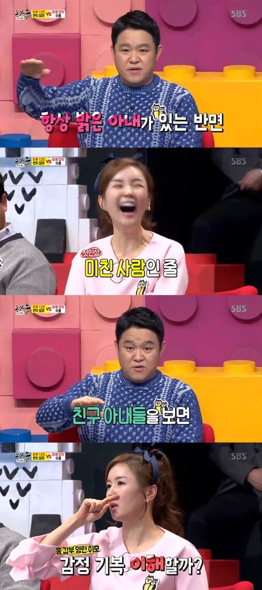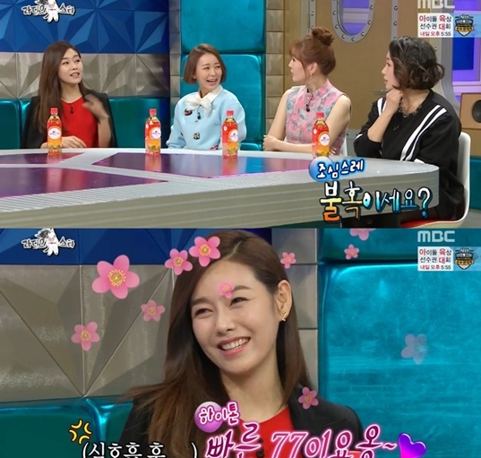 박탐희, 나이 묻는 질문에 &'빠른 77, 포털에서 지웠다&' 배우 박탐희의 나이가 공개돼 화제다. 박탐희는 18일 오후 MBC 예능프로그램 &'황금어장-라디오스타&'의 &'기저귀 값 벌러 왔어요&' 특집에 출연해 포털사이트에 나이가 없는 이유를 고백했다. 이날 방송에서 MC들은 게스트로 출연한 박탐희, 심이영, 방송인 장영란, 정경미에게 &'이 중에서 가장 나이가 많은 사람이 누구냐&'고 물었다. 이에 게스트들은 입을 모아 &'박탐희가 가장 나이가 많다&'고 답했다. 이 이야기를 듣던 MC 규현이 &'그런데 포털 사이트에 나이가 없다&'고 지적하자 박탐희는 특유의 나긋나긋한 목소리로 &'지웠어요&'라고 말해 웃음을 자아냈다. 그러면서 박탐희는 &'여배우의 나이는 묻는 게 아니다&'라면서 &'빠른 77이요옹&'이라고 나이를 어렵게 밝혀 놀라움과 웃음을 줬다. (사진=MBC)